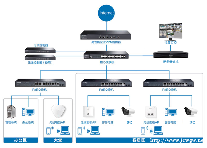 宾馆酒店内线电话交换机,客房分机前台总机,客房电话与房间号码一致,前台客房通话免费,打出电话计费,客房定时叫醒闹钟功能,提升宾馆酒店形象档次,方便管理服务